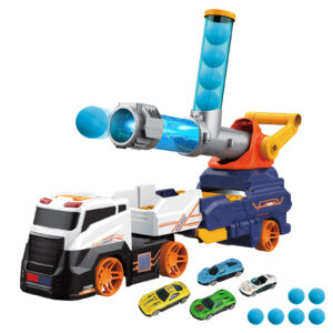 • Blast Off with Fun: Our Truck Launch Set includes a garage truck with a powerful launcher, 4 race cars, 6 EVA balls, and cool stickers for non-stop action and excitement.