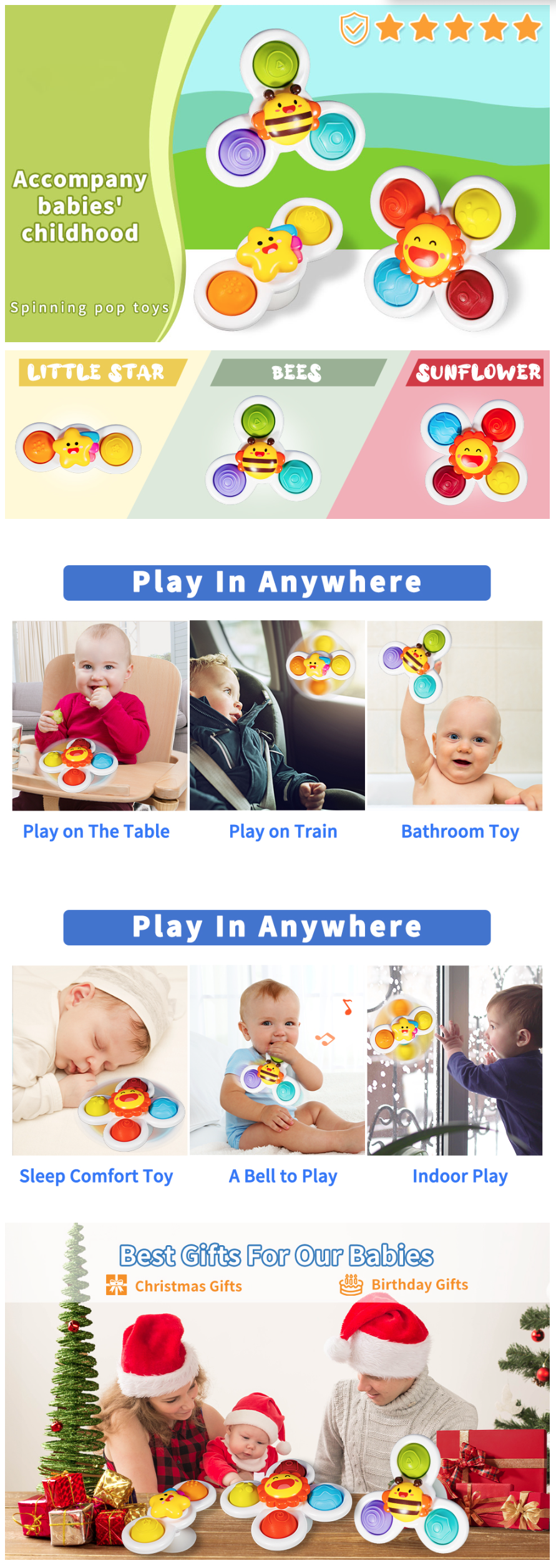 lerrbo 3 PCS Pop Saugnapf Spinner Spielzeug für 1 Jahr alt Junge Mädchen|Neuartige Spinning Tops Kleinkind Spielzeug Alter 1-2|Sensory Baby Badespielzeug für Kleinkinder 1-3|6 12 18 Monate Junge
