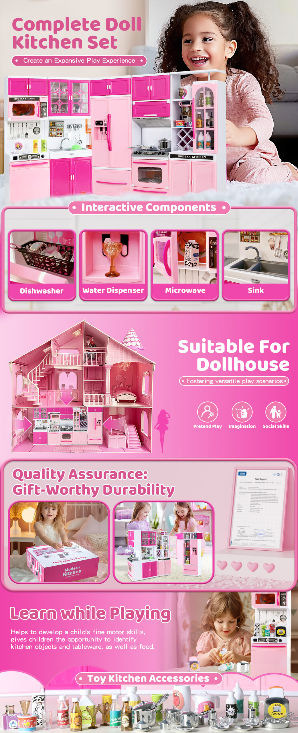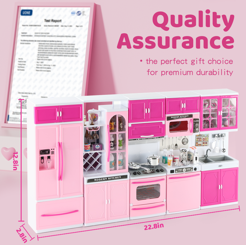 - Ample Storage: Open cabinets and a mini refrigerator provide organized space for accessories, teaching tidiness through play.