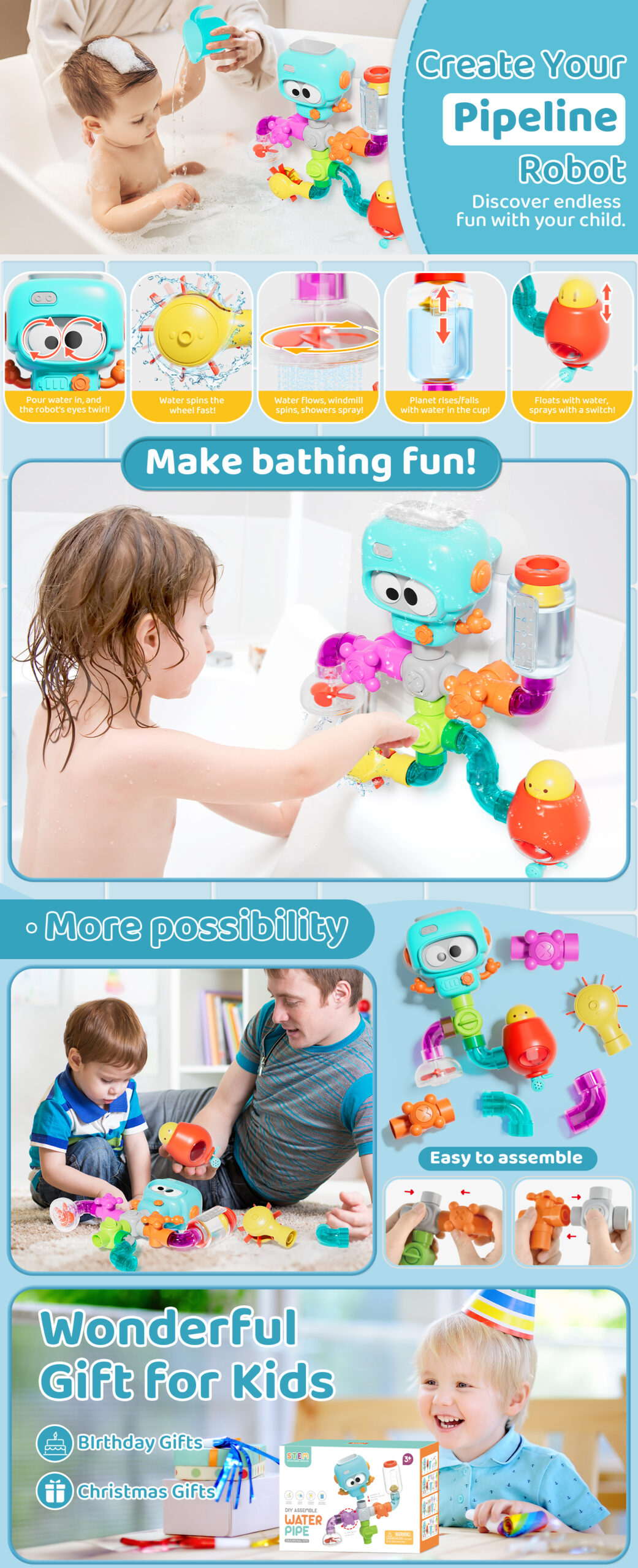 - Fun DIY Water Pipe for Bath Time: Turn bath time into an adventure! Ideal for kids aged 4 – 8, it sparks creativity and problem – solving. A top choice for toddler bath toys